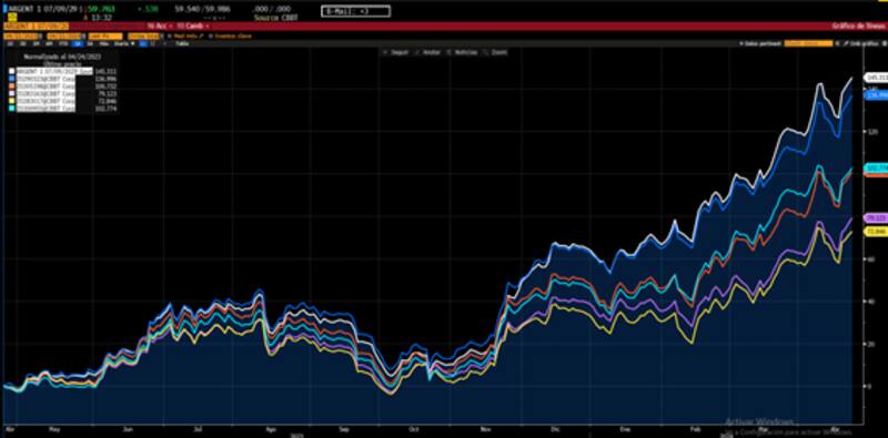 La máxima perdida evidenciada por los bonos alcanzó el 70% hasta mediados de 2022 y desde entonces los Globales y los Bonares iniciaron una fuerte recuperación.