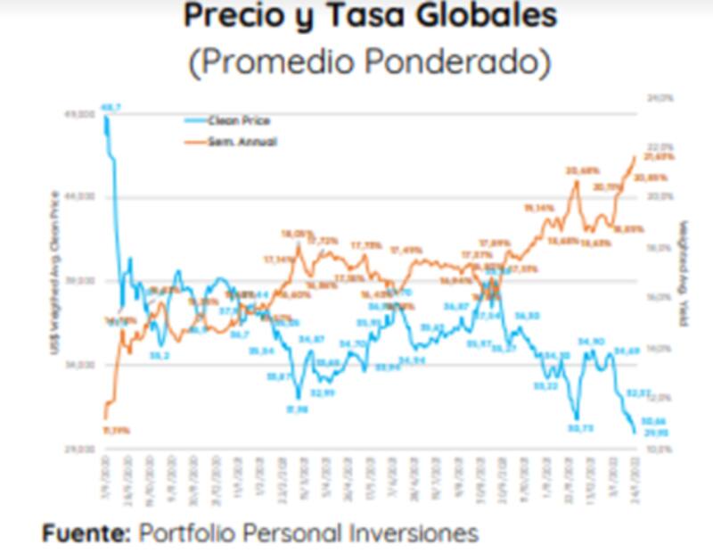 "Los bonos en dólares hicieron nuevos mínimos de precios, los rendimientos en el tramo más corto llegan incluso a superar el 25%"