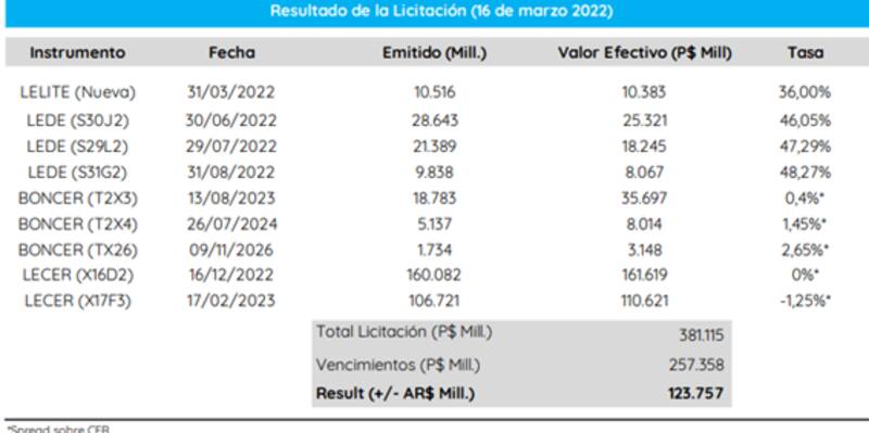 De esta manera, logró un rollover del 148% en una fecha desafiante por el abultado vencimiento ($ 257.000 millones tras el canje del TX22).