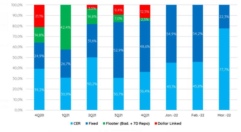 Gándara agregó que la última semana, los bonos CER captaron la mayor parte de la demanda, después del dato de inflación de febrero del 4,7%.