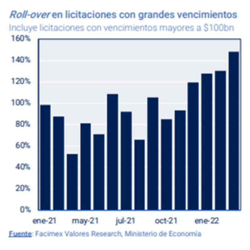 De hecho, en el corto plazo, en materia de licitaciones, quedan dos ventanas más, a llevarse a cabo el 22 y el 29 de este mes y donde se tendrán que rollear unos $ 400.000 millones.