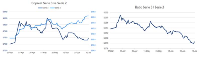 En ese sentido, los Bopreal aparecen como una opción en dólares que suele tener una dinámica más firme y de menor volatilidad respecto del soberano.