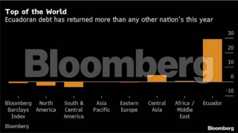 Los bonos de Ecuador ganan un 30% este año, contrastando con las pérdidas evidenciadas en los bonos en los EE.UU. así como también en la deuda de Sudamérica y bonos a nivel global.