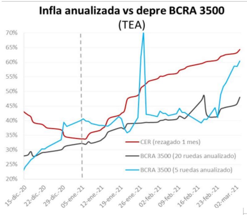 "Advertimos que la inflación será elevada este año y estimamos que la de 2022 será mayor a la de 2021. Por este motivo, el CER posiblemente correrá a una tasa mayor que el tipo de cambio, poniendo atractivo a ese asset class. En CER, preferimos el tramo de duration que va desde agosto 2022 a marzo/abril 2023", cerró el economista.