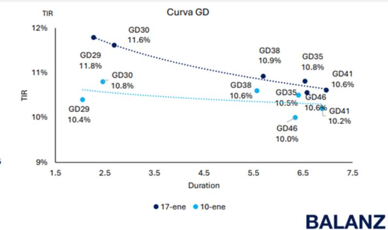 En cuanto al posicionamiento, desde Balanz agregaron que tras el mejor desempeño de la parte larga, ahora vuelve a verse atractivo el GD30.