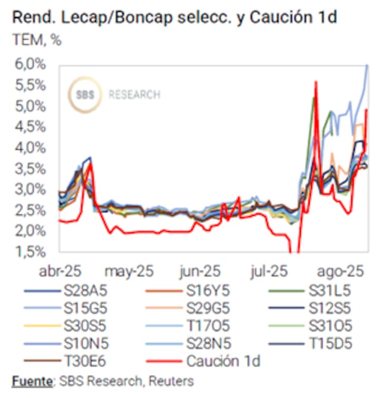 Sin embargo, agregó que a causa de la volatilidad de las últimas semanas, las Lecaps y Boncap con vencimiento en noviembre y diciembre por momentos también tengan una ganancia de carry "asegurada".