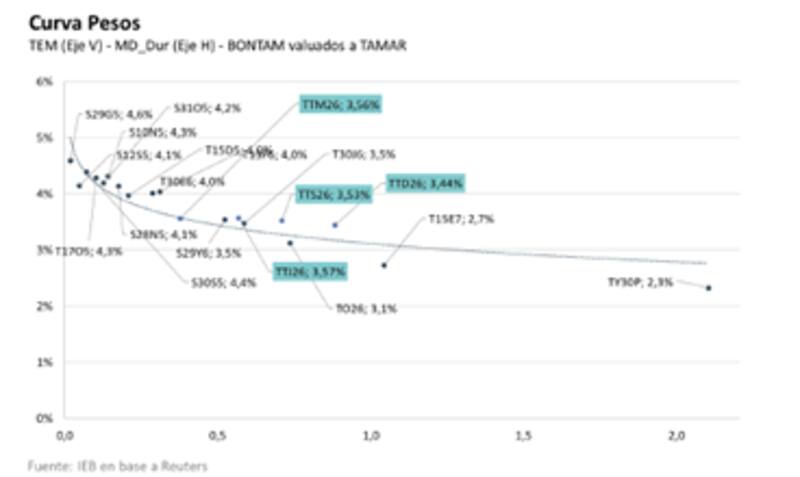En este escenario, desde Research Mariva agregaron que, para un inversor con menor aversión al riesgo, la curva de Bontam parece atractiva.