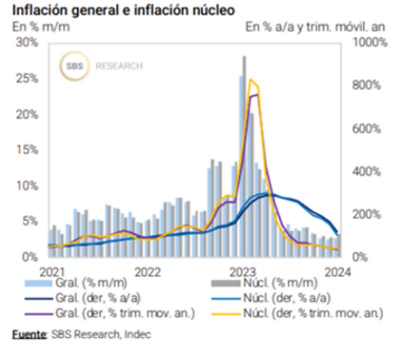 Para el 2025 los bonos actualmente "pricean" una inflación en torno a 17% alineada con la proyección del proyecto de presupuesto 2025.