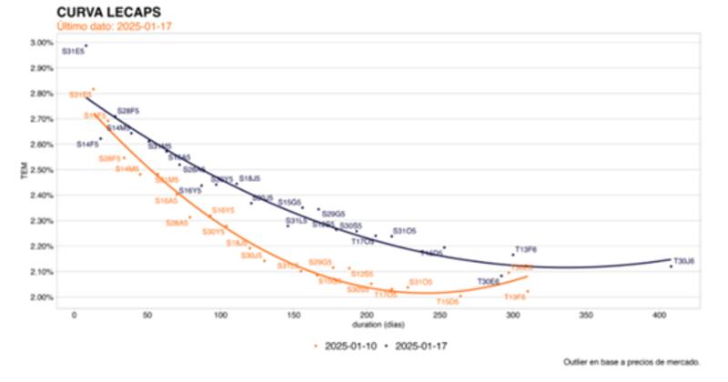 "Para los más optimistas en materia de inflación sigue teniendo sentido posicionarse en el tramo largo de tasa fija vía Boncaps. Aquí resaltamos a febrero de 2026 (T13F6). En tanto, para posiciones de carry de corto plazo, el tramo corto de Lecaps luce atractivo dada la inversión de la curva y preferimos aquellas con vencimiento en el primer trimestre del año", indicó.