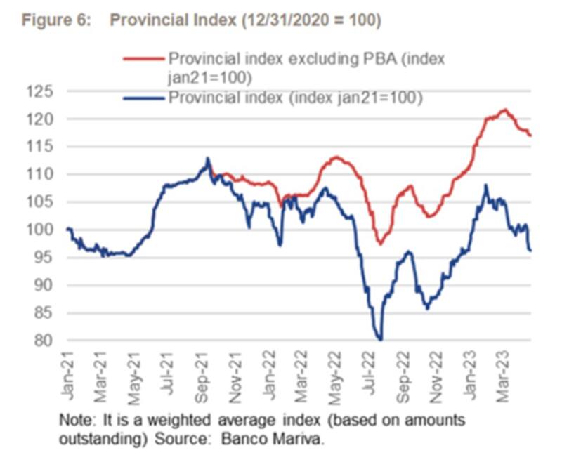 El índice de deuda provincial elaborado por los analistas de Banco Mariva muestran que el mismo se cayó poco más del 10% en el mismo período.