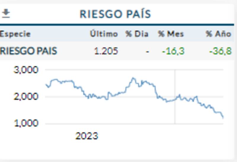 La tasa de riesgo país de la Argentina cayó hoy más de 8%, hasta los 1205 puntos básicos, lo que marca un retroceso hasta las posiciones de septiembre de 2020.