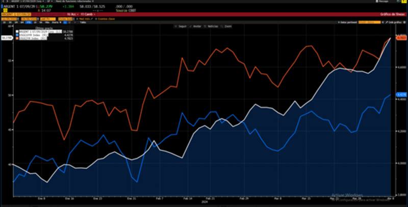Las acciones argentinas también se estan despegando de la tendencia global.