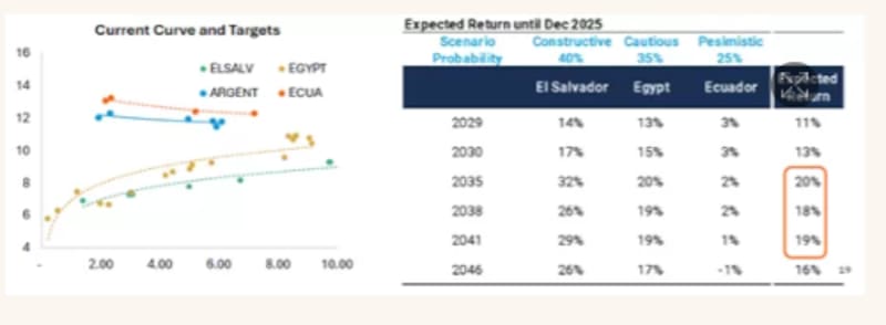 "Seguimos recomendando mantener posiciones en los GD35con objetivo de yield entre 8,2% (El Salvador) y 9,5% (Egipto)", detallaron.