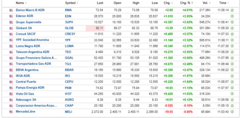 Las mayores ganancias se dan en Banco Macro, con un avance del 4%. Le siguen Edenor, que gana 3,95%, Grupo Supervielle, Globant, Cresud, YPF, Loma Negra, Telecom, Grupo Financiero Galicia, TGS y BBVA Argentina, entre otros, con subas de 2% al 3,8% el viernes.