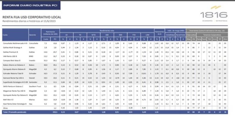 Los fondos comunes de inversión muestran rendimientos en lo que va del año del 3,5% en promedio en dólares, según el ranking elaborado por la Consultora 1816.