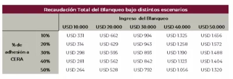 Además, consideró que "este blanqueo ofrece beneficios significativos, como la posibilidad de hacerlo sin costo alguno para el efectivo, con la opción de invertir en una amplia gama de activos o destinar los fondos a compras onerosas".
