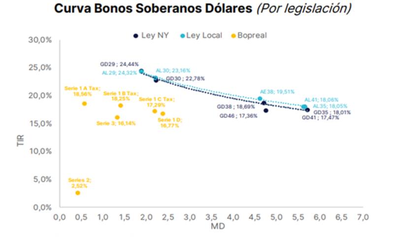 "Para un inversor conservador que quiere entrar al blanqueo, hoy la cartera no incluimos Bopreal. Preferimos obligaciones negociables, tanto ley extranjera como ley local. También vemos valor en los bonos soberanos, tanto en el GD41, GD30 y GD35", indicó Bagilet.