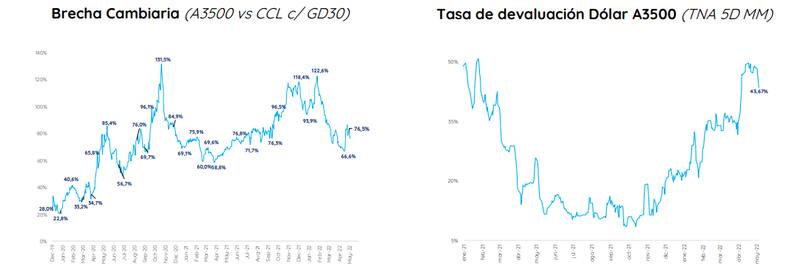 Además, para Giorgio, en este escenario, los dólares financieros deberían viajar al menos al ritmo del dólar oficial, manteniendo la brecha estable. Algo de esto se estaría empezando a observarse en mayo.