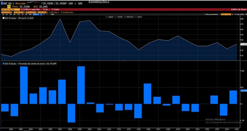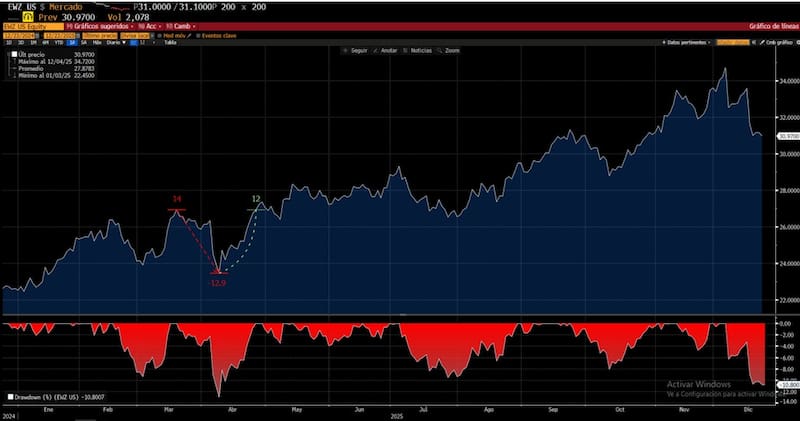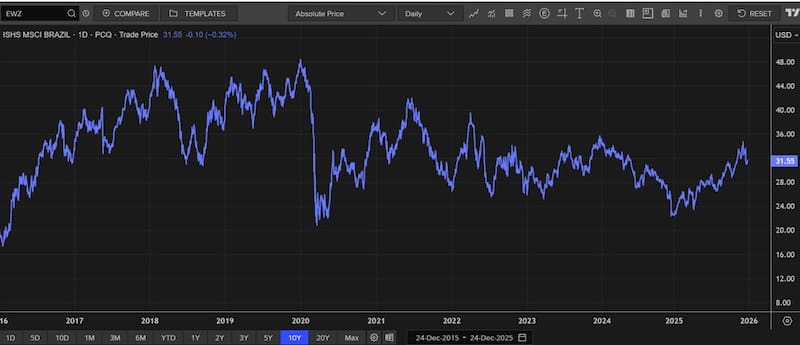 De esta manera, y con las ganancias de 40% en el 2025, el EWZ se encamina a tener su mejor año desde 2016.