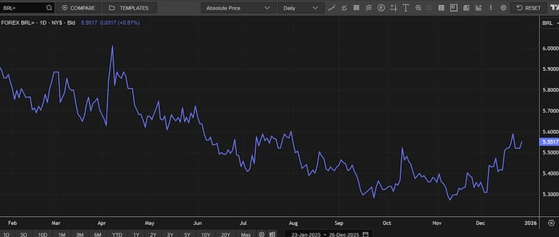 El real se apreció 10% este año, de la mano de la debilidad del dólar a nivel global, lo cual favoreció a los papeles brasileros.