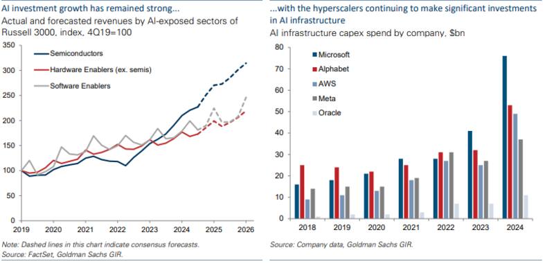 Goldman Sachs coincide en que el sector tecnológico aún ofrece oportunidades para los inversores, especialmente en empresas con fundamentos sólidos y posición estratégica en la cadena de valor de la IA. Pero la diversificación vuelve a ser la palabra clave.