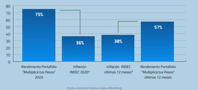 "Este portafolio ha sido pensado para otorgar una opción de inversión en pesos ganadora, sólida, consistente, que le gane permanentemente a la inflación. Esto es posible ya que los cuatro fondos que lo componen poseen los mejores equipos de administración de la industria y, por eso, toman mejores decisiones con nuestro dinero, otorgándonos retornos diferenciales que hacen que podamos aumentar nuestro poder de compra año a año. En el 2020, el portafolio propuesto ha rendido más que el doble de la inflación otorgando rendimientos reales positivos que logran multiplicar nuestros pesos con una aceleración muy grande", explicaron.