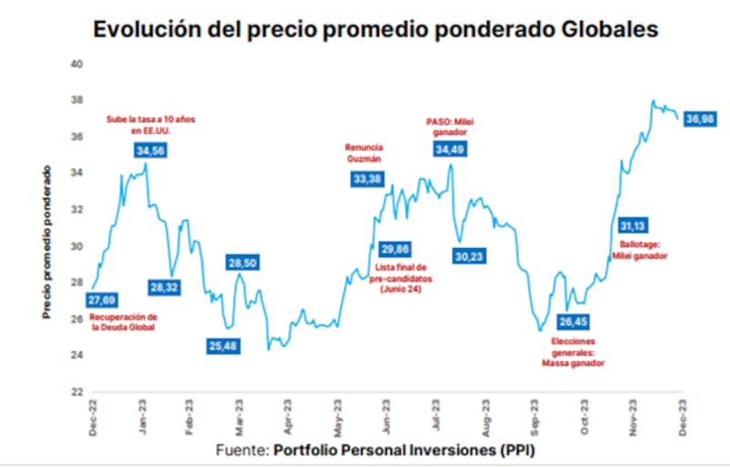 "La victoria de Javier Milei en el ballotage, el derrumbe de la brecha cambiaria desde el 180% al 20%, la determinación de avanzar rápidamente hacia el equilibrio fiscal y las audaces propuestas de desregularización de la economía a través del megaDNU y la Ley Ómnibus a tratarse en sesiones extraordinarias favorecieron una fuerte expansión de los múltiplos de valuación de las empresas argentinas", explicaron.