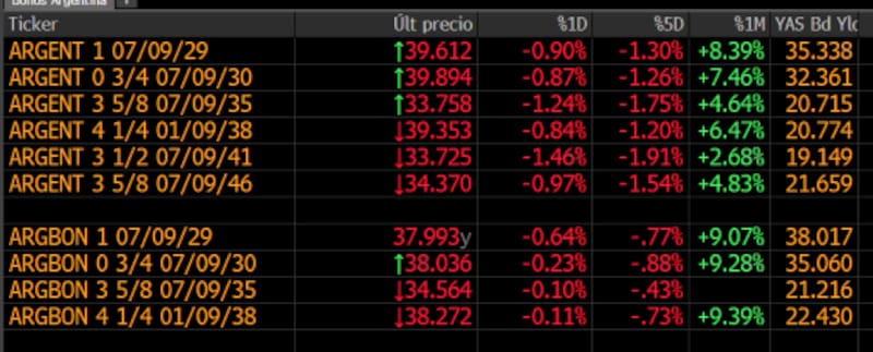 El tramo corto de la curva de los bonos en dólares rinde hasta 35%, mientras que los bonos del tramo medio y largo operan con tasas promedio del 20%.