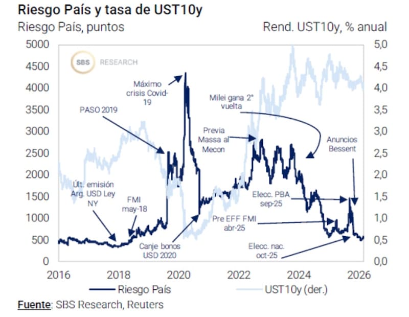 Estos son niveles de tasa de interés más altos, lo cual coincide con un riesgo país más elevado, el cual se ubica en niveles de 600 puntos.