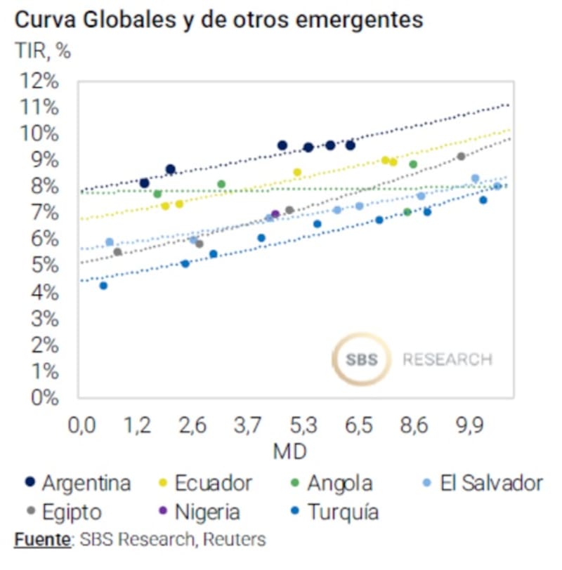 A estos niveles de tasa, la curva soberana local opera por encima de los que lo hacen comparables como Ecuador, Egipto, El Salvador, Nigeria, Angole y Turquía, entre otros.