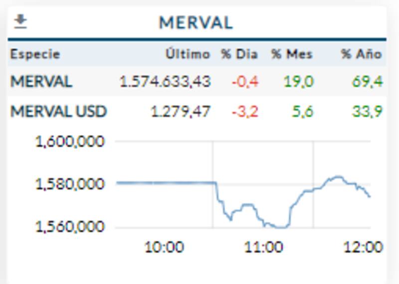 El S&P Merval en dólares baja 5,6%, mientras que en pesos cae 2,2%
