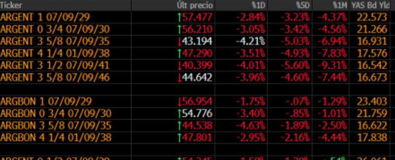 Esto impactó en los bonos soberanos en dólares, evidenciando las bajas recientes.