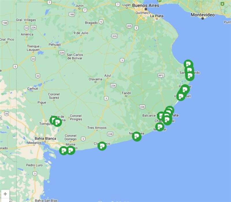 Si bien el listado incluye en su mayoría a ciudades costeras, también sumó en el mapa unidades de extracción de efectivo en las siguientes localidades: Tornquist, Villa Ventana, Sierra de la Ventana y Tres Arroyos.