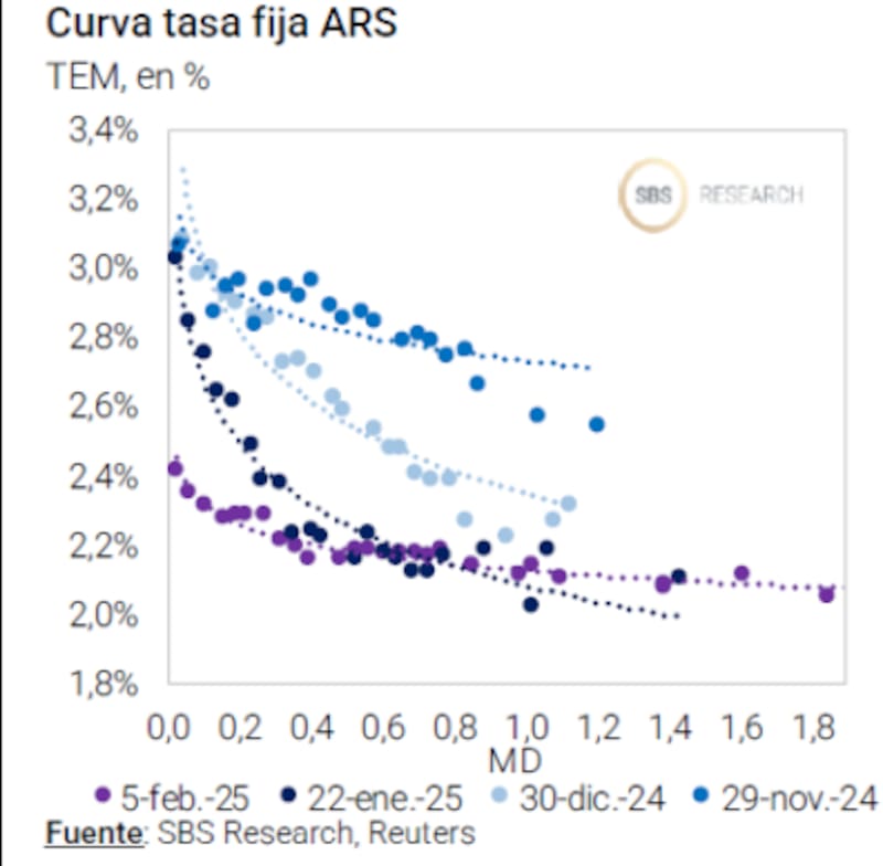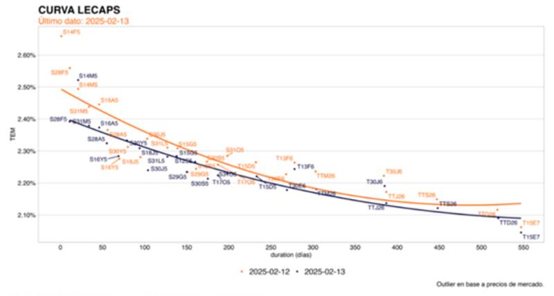 Actualmente, la curva de Lecap y tasa fija opera con tasas de 2,4% en el tramo corto y de 2,1% en el más largo. Los títulos con rendimiento fijo a mayor plazo también operan en niveles similares.