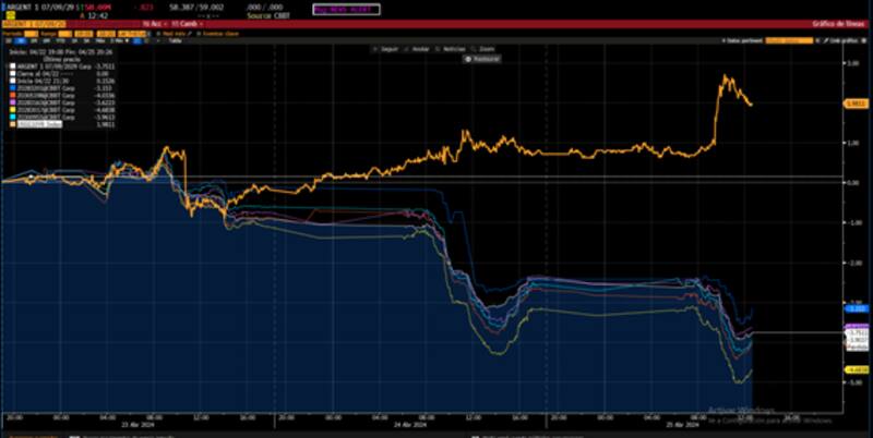 Los bonos a 2029 y 2030 bajan 3,8% y 3% respectivamente.