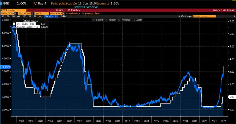 Anticipándose a una Fed más contractiva (hawkish), las tasas de interés se dispararon en el mercado, y le pusieron más presión a la Reserva Federal a que sea todavía más agresiva.