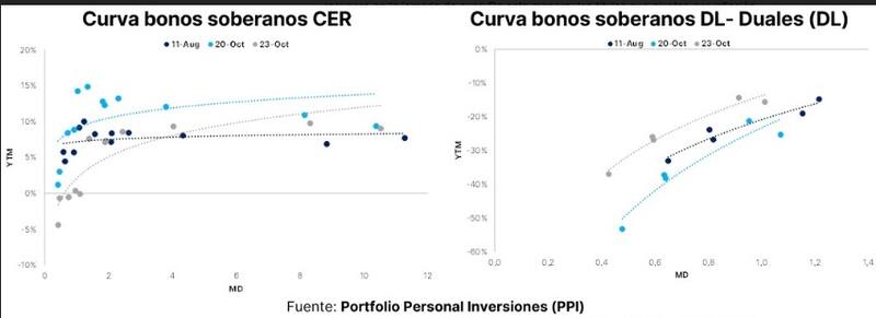 Se evidenció una importante compresión de bonos CER, con las tasas reales colapsando desde 5% a 10% antes de las elecciones, a casi 0% en el tramo corto de la curva.
