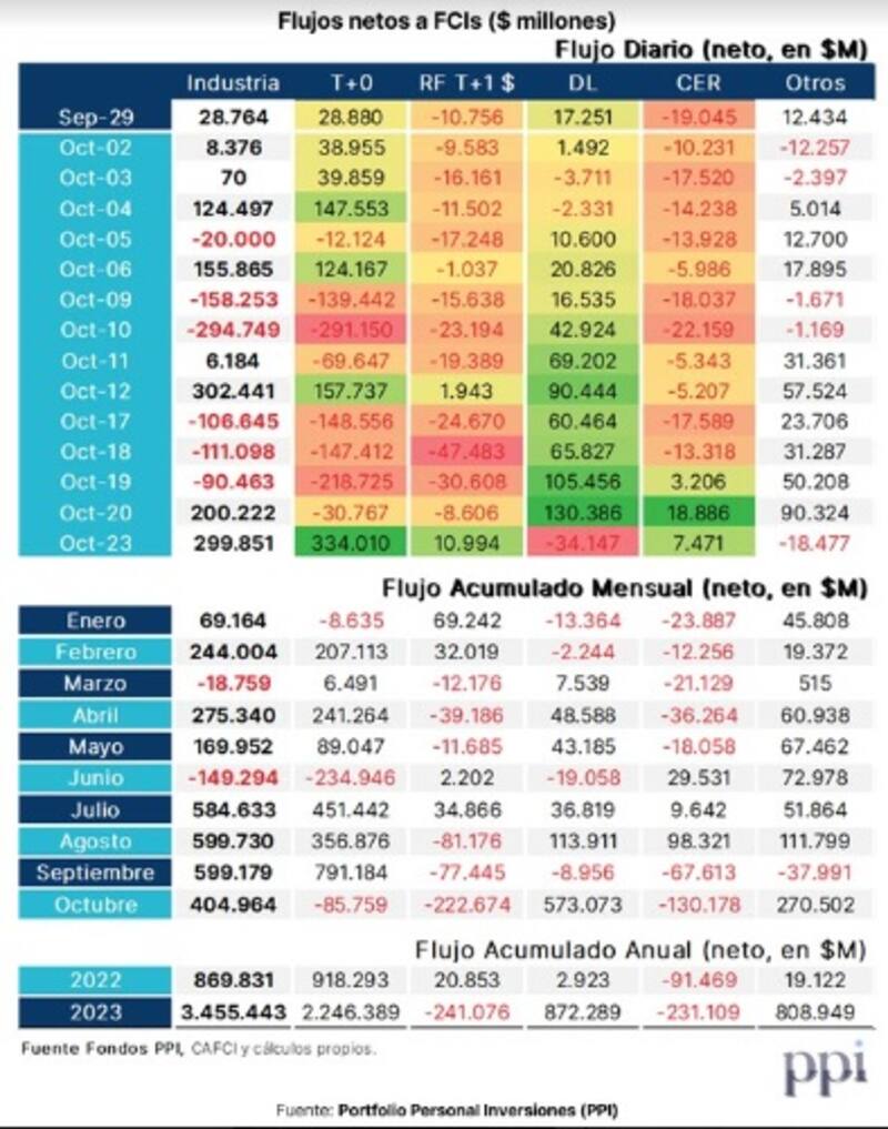 Mariano Calviello, head portfolio manager de Fondos FIMA, explicó que el lunes se notó cierto cambio en el flujo, revirtiendo lo que se venía observando en las últimas dos semanas, con flujo hacia los fondos con ajuste CER y fondos T1, y ciertos rescates en fondos dólar linked.