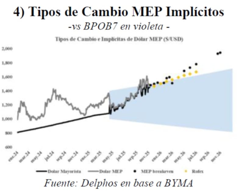 Los analistas de Delphos Invetsments resaltaron que el mercado continúa escéptico respecto de la permanencia del régimen de bandas cambiarias y esto se observa en los MEP breakeven.