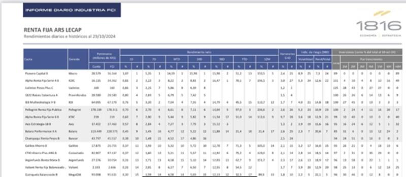 "El liderazgo del FCI en su segmento se debe principalmente al posicionamiento estratégico de la cartera en la parte media/larga de la curva de Lecap. Desde principio de año que desde Max recomendamos estos activos, confiando en que se consolidaría el sendero de desaceleración de inflación, que ha demostrado estar consistentemente debajo de lo que esperaba la mayoría de los economistas", dijo Guaia.