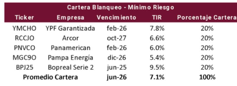 La cartera Mínimo Riesgo diseñada por los analistas de Cohen para el Blanqueo propone prioridad absoluta en la minimización de riesgos y la volatilidad para los inversores.