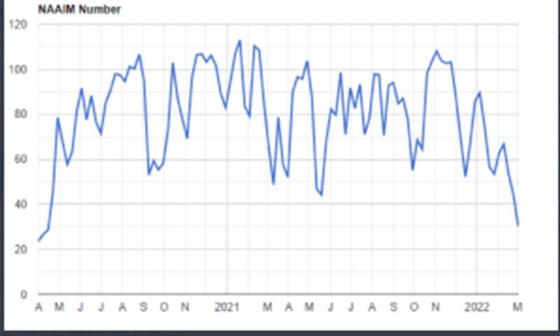 De hecho, el índice de exposición NAAIM, el cual representa la exposición promedio del mercado a acciones, ha colapsado a su nivel más bajo desde abril de 2020, momento de mayor pánico en medio de la crisis de coronavirus.