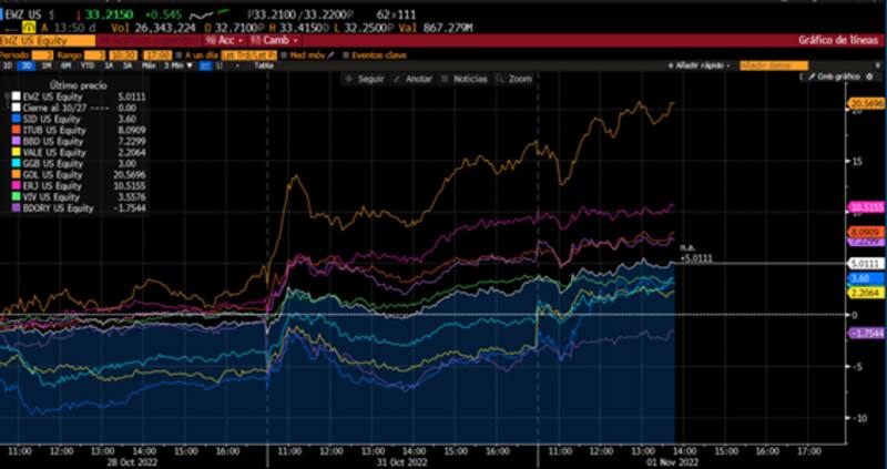 En el mismo sentido, casos como Itau y Bradesco ganan 7,5% en promedio desde el resultado electoral a hoy.