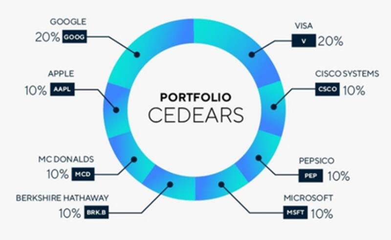 El Portafalio Recomendado de Cedears Criteria, contiene un 20% de acciones de Google, 10% de acciones de Microsoft, y 10% de acciones de Apple.