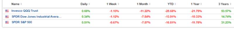 Le sigue el S&P500 que pierde 16,8% y luego el Dow Jones, con un retroceso en lo que va del año del 13,9%.