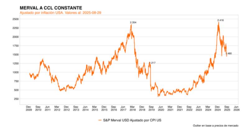 Vlassich deslizó que, la performance del S&P Merval medido en moneda dura registró en agosto de 2025 una caída del 14,3%, hasta los u$s 1461, por lo que borró "prácticamente todo el rebote que había logrado tras la salida del cepo en abril".