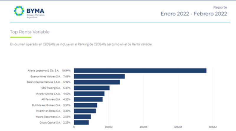En el ranking de BYMA, Allaria Ledesma es la sociedad de bolsa que mayor volumen concentró en Cedear, con el 24,1% durante el primer bimestre del año.