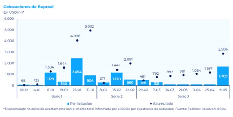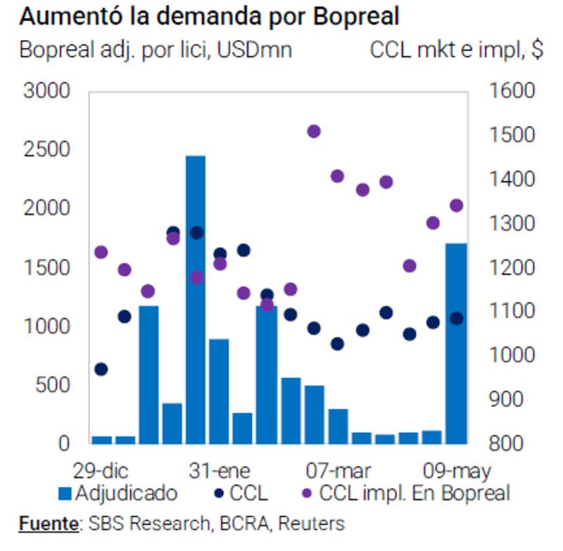 Debido a que el Bopreal se suscribe en pesos, con esta licitación se generó una importante absorción de pesos que le quita presión al tipo de cambio de aproximadamente 13% de la base monetaria.
