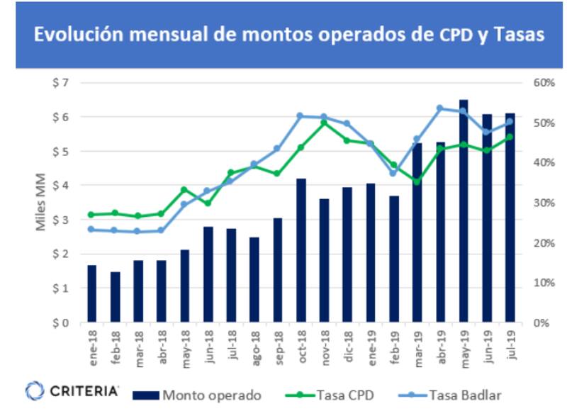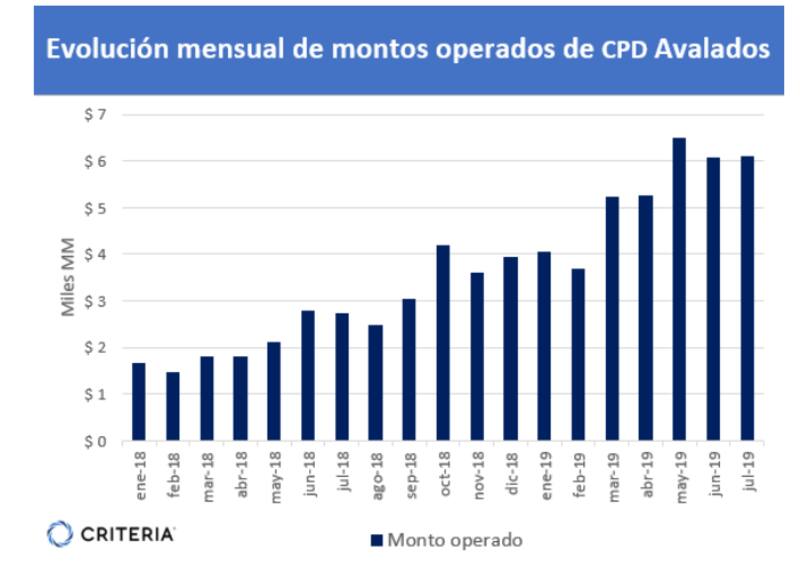 Haciendo un repaso de los números de descuentos de cheques en el mercado de capitales, Gonzalo Vallejos, Managing Partner de Criteria destacó que el volumen negociado de Cheques de Pago diferido Avalados durante el mes de julio fue de $ 6.105 millones, lo que representa unos $ 36.894 Millones en el acumulado del año.