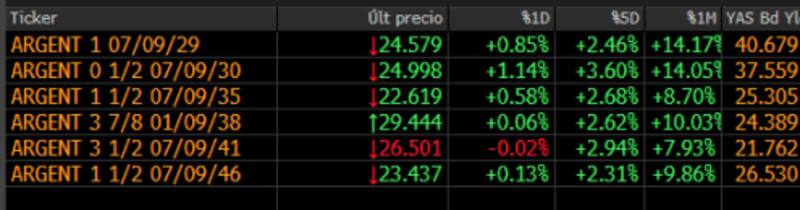 En el acumulado del último mes, los Globales ensayan una suba de entre 8% al 14% y gracias a la última suba, los bonos pudieron regresar a niveles de agosto pasado, momento en el cual Sergio Massa asumía como ministro de Economía.